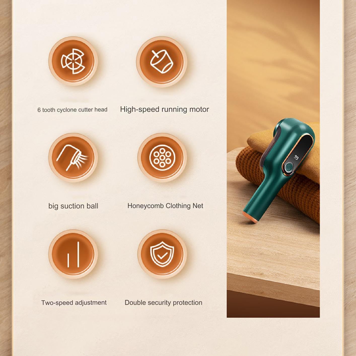 Hold dit tøj frisk og fnugfrit med vores Premium genopladelige elektriske fnugfjerner. Med et slankt, ergonomisk design og avanceret 6-tands cyklonknivteknologi gør denne kraftfulde fnugfjerner det nemmere end nogensinde at fjerne fnug, dun og pilling fra dine yndlingsstoffer.